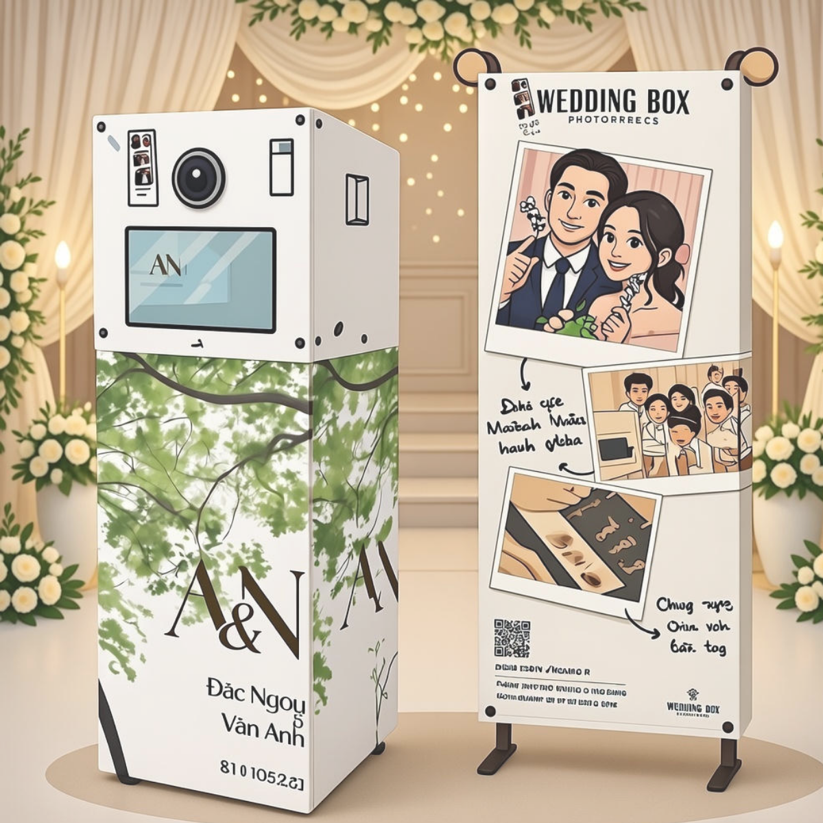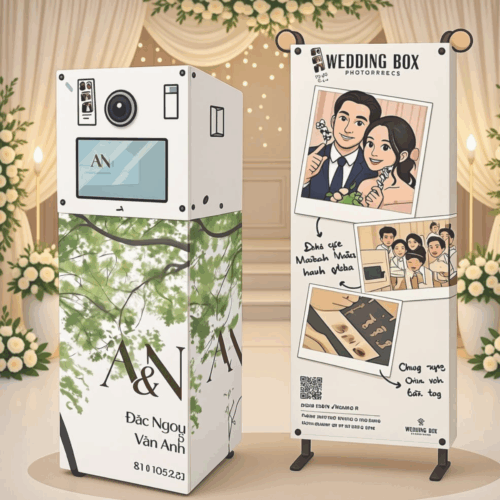 – Trang trí dán chân máy theo concept và tông màu chủ đề tiệc cưới